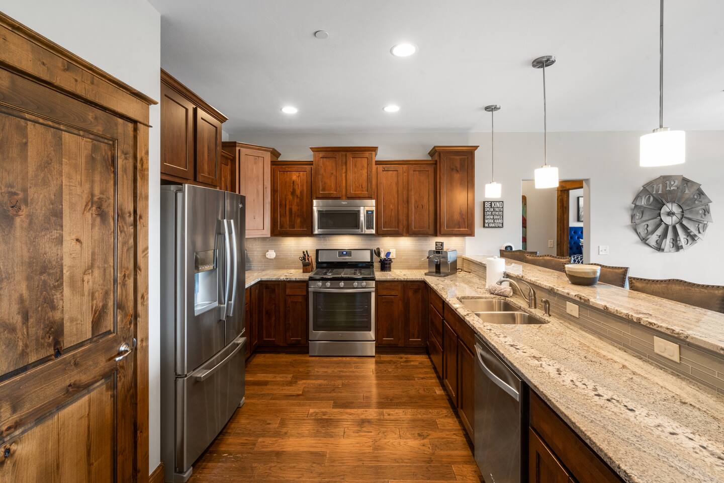 KEY FEATURES: ☀ Beautiful and elegant home with spacious living area ☀ 2 comfortable bedrooms; 1 king, 1 queen ☀ 2 bathrooms; luxury toiletries ☀ Full kitchen w/ stainless steel appliances ☀ Private balcony with bistro seating and a weber grill ☀ High-speed wifi + flat-screen TV ☀ Gas fireplace ☀ Washer + dryer ☀ Free parking Situated in the heart of Bozeman, Main Street Mountain View offers easy access to a wide range of amenities and attractions. Explore the downtown area, less than a 10 minute walk from the condo, where you'll find a variety of dining options, diverse shops, and entertainment venues. Take leisurely walks along Peets Hill and Main Street to the Mountains path, delighting in the beauty of the local trails and partaking in the natural wonders of the area right out the back door. The University and Hospital are both quickly accessible from this condo either through a trail system or by vehicle. Here Are A Few Kind Words From Our Past Guests: “This condo exceeded our expectations. It was clean, quiet, spacious and very comfortable. The owners were great to work with. I would stay there again and will recommend this anyone looking to stay in Bozeman.” - Brenda “From booking throughout the stay, this property was one of the best short term rentals I have experienced. The property itself and the amenities were amazing and it is perfectly located on the edge of downtown Bozeman - easy walking distance to the park next door and many restaurants and shopping on Main Street. Upon check out the host asked what they could have done to improve the stay and my response was absolutely nothing. Book this property now to enhance your stay in beautiful Bozeman!” - Justin “Fantastic condo! Well stocked with everything we needed….great location! We’ll be back!.” - Sarah ☆☆ BEDROOMS + BATHROOMS ☆☆ The two spacious bedrooms are beautifully decorated and offer full-length mirrors, spaces for clothing, and comfortable mattresses so you can sleep soundly during your stay. The luxurious primary bedroom featuring a king bed, provides the perfect place to curl up with a good book. The ensuite bathroom is spaciously appointed with walk in shower, double counters - each with their own sink, and seperate toilet room. A full walk-in closet is supplied with extra blankets and pillows. The second bedroom features a queen size bed and armoire to store your clothing and other items. A full bathroom is easy to access from the second bedroom and main living area and features a bath tub and shower, sink, and large counter space. Each full bath is stocked with fresh towels and shampoo, conditioner, and body wash. ☆☆ KITCHEN & LOUNGE ☆☆ The sleek design welcomes you as soon as you walk into the condo. The modern kitchen, with its modern stainless steel appliances and spacious peninsula, is fully equipped with everything you need to make preparing and cooking meals a breeze! You’ll also find a Keurig coffee machine as well as a Gaggia Brera Automatic espresso maker so you can enjoy fresh coffee every morning! The kitchen opens up to the sleek dining area and comfortable living room. Plenty of seating is available on the sofa and chairs, making this the perfect place to spend time with the whole family. Snuggle up next to the gas fireplace or watch a show on the smart TV, which is hooked up to wifi and ready for you to login to your favorite streaming apps. If you need to get work done during your stay, the fast wifi makes it easy. ☆☆ OUTSIDE SPACE ☆☆ Through the back sliding door, you’ll find a lovely outdoor balcony space with bistro seating and a weber grill. The perfect place to enjoy a leisurely breakfast while watching the cars go by on Main Street and taking in the beautiful view of the mountains. ☆☆ THINGS TO DO ☆☆ This spacious condo is in the perfect location for discovering Bozeman! If you're in the mood for some cultural enrichment, the Museum of the Rockies is just a short drive or a refreshing walk through the trail system. The Bozeman Library is down the hill, through Lindley Park. If you are in need of groceries, Town & Country grocery store is a short walk away or an easy drive. If you need a bit more Costco, Target, and Walmart are all accessible by the interstate. Outdoor enthusiasts will delight in the easy access to Bridger Bowl Ski Area only 17 miles away, and Big Sky Resort is just 51 miles away. Embrace the relaxation offered by the nearby hot springs, such as Bozeman Hot Springs, Chico Hot Springs, and Yellowstone Hot Springs. Immerse yourself in the soothing waters and let your cares melt away. Yellowstone National Park is 77 miles to the north entrance making your central location vacation home the perfect base for all your explorations. Main Street Mountain View is your retreat as you access the best that Bozeman has to offer. Book your stay today and experience the perfect blend of luxury, comfort, and convenience in this remarkable destination.