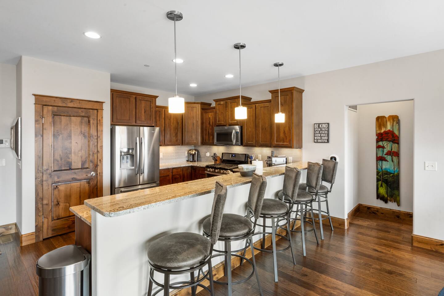 Kick back and relax in this calm and cozy condo offering a great combination of luxury, comfort, and breathtaking views in the heart of Bozeman. This immaculate space is ideal for any kind of traveler. - Just 15 minutes from Bozeman Yellowstone Airport - Only a 7 minute drive to Montana State University - A quick 10 minute walk to downtown Bozeman - Centrally located between 2 ski resorts. Bridger Bowl (17 miles away) and Big Sky Resort (51 miles away)